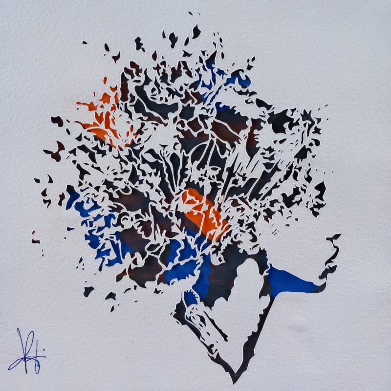 This unique and original contemporary artwork "Défiance" was created by contemporary artist Louafi Valentine. The artist used the cut-paper technique to create this small-format work on paper in the Figurative style on the theme of Portraits.
