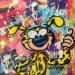 The artist used a mixed technique of collage, torn posters, acrylic paint and resin to create this small-format Pop-art-style painting on dibon on the theme of Pop Icons.