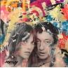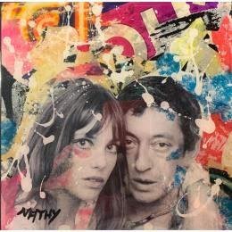 The artist used a mixed technique of collage, street posters, acrylic paint and resin to create this small-format Pop-art-style painting on dibon on the theme of Pop Icons.