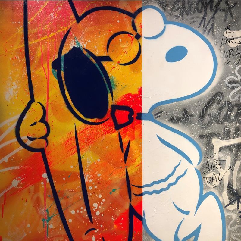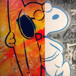 This unique and original contemporary artwork "Snoopy Surf Bi Colors" on the subject of Pop icons has been created by the contemporary artist Kedarone.