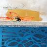 The artist used Cardboard, Gluing, Textile, Gold leaf, Paper, Acrylic media on Cardboard to create this Abstract, Small size painting.