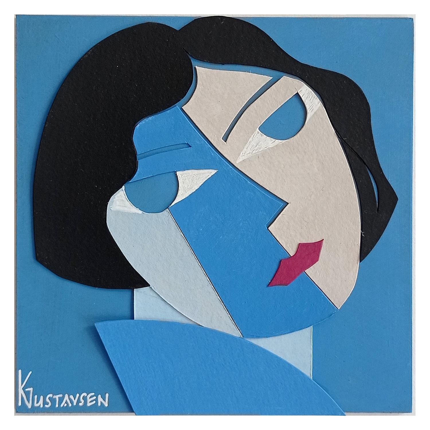 This unique and original contemporary artwork "Les yeux bleus" on the subject of Portrait has been created by the contemporary artist Gustavsen Karl.