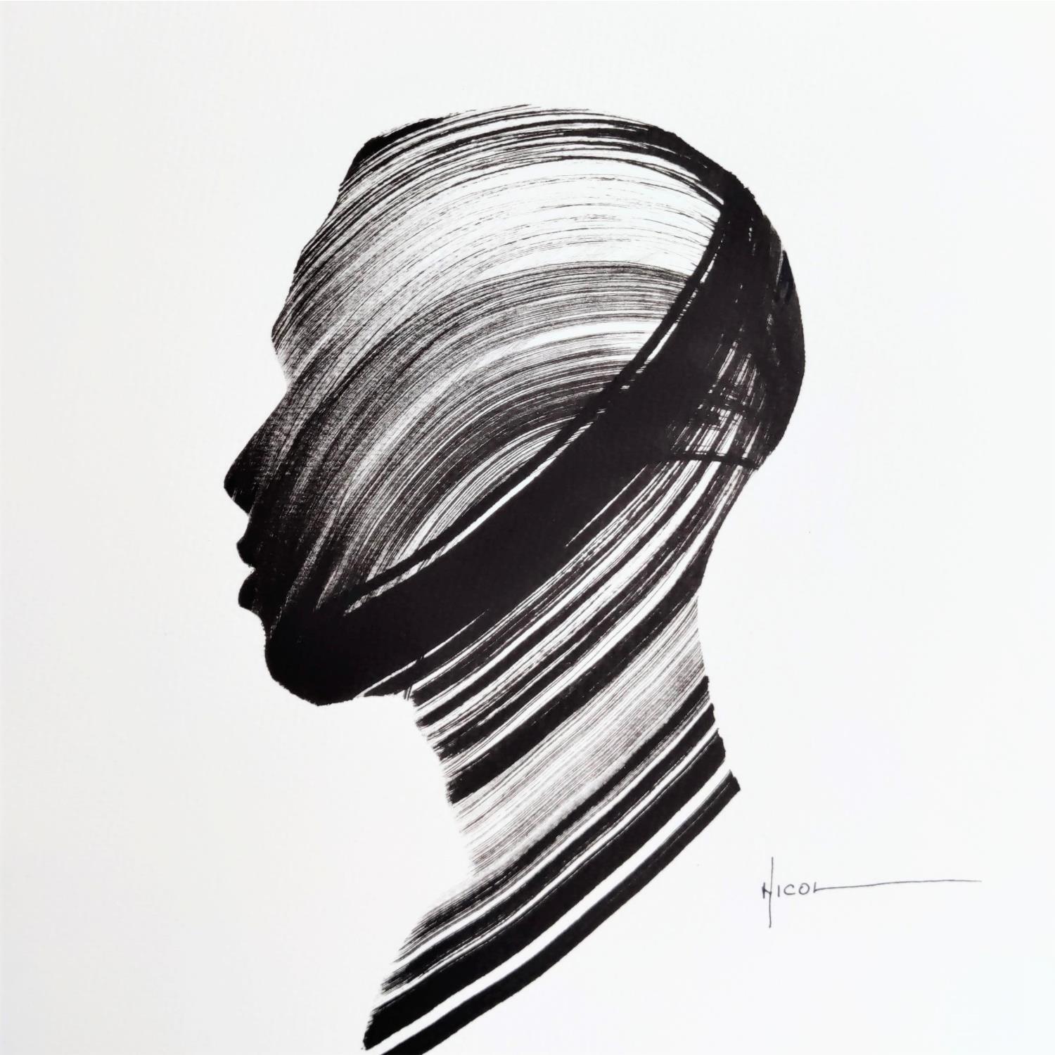 Pintura Time XLI por Nicol | Pintura Figurative Portrait Ink