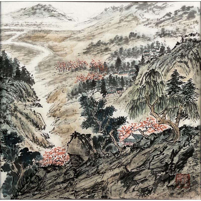 This unique and original contemporary artwork "River in Autumn" was created by contemporary artist Tayun. The artist used the Ink technique to create this small-format painting on paper in the Figurative style.