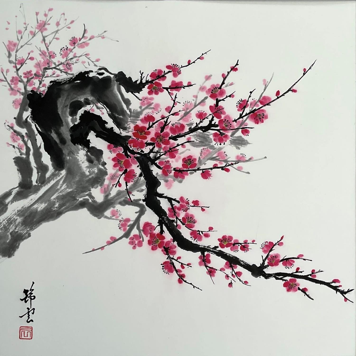 This unique and original contemporary artwork "Cherry Blossom" was created by contemporary artist Tayun. The artist used the Ink technique to create this small-format painting on paper in the Figurative style.