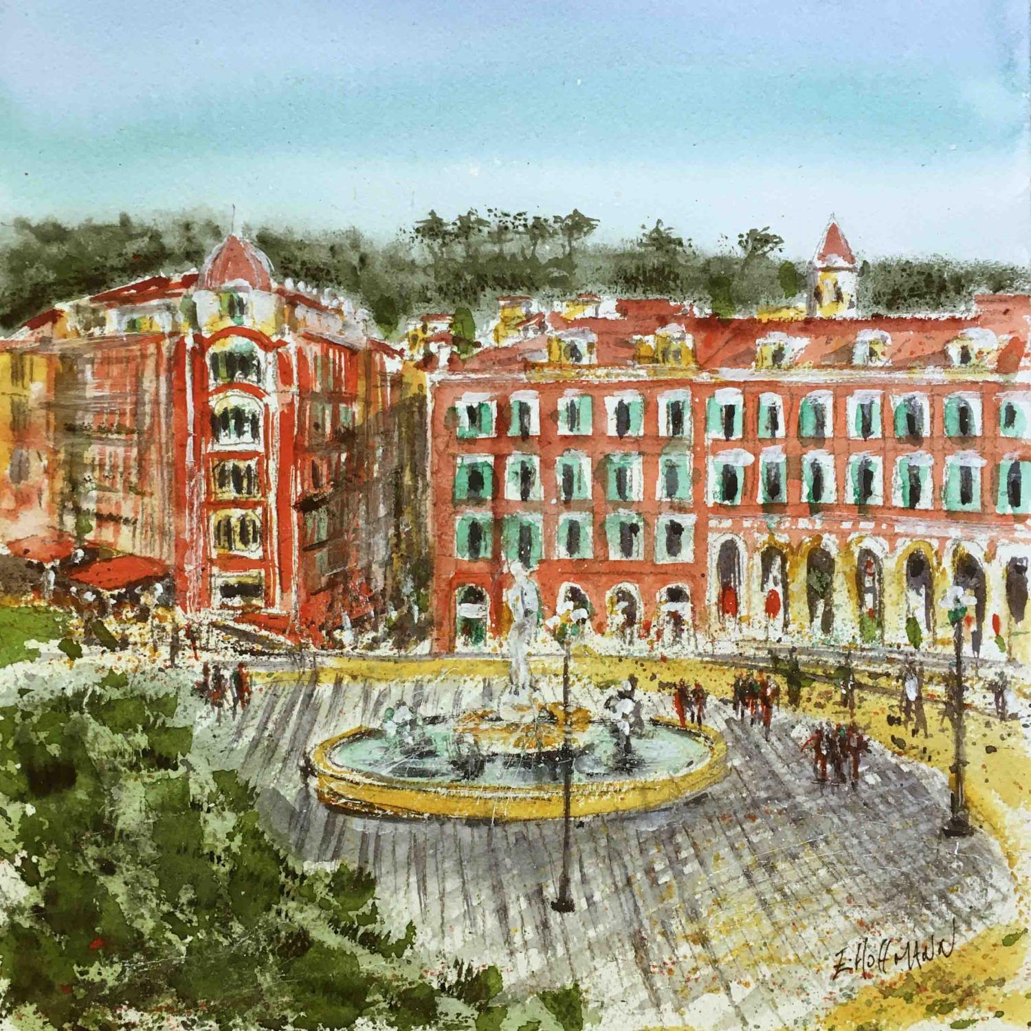 This unique and original contemporary artwork "Fontaine du soleil à Nice" on the subjects of Landscapes, Urban has been created by the contemporary artist Hoffmann Elisabeth.