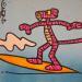 This unique and original contemporary artwork "SURFING PINK PANTHER" on the subject of Pop icons has been created by the contemporary artist Cmon.