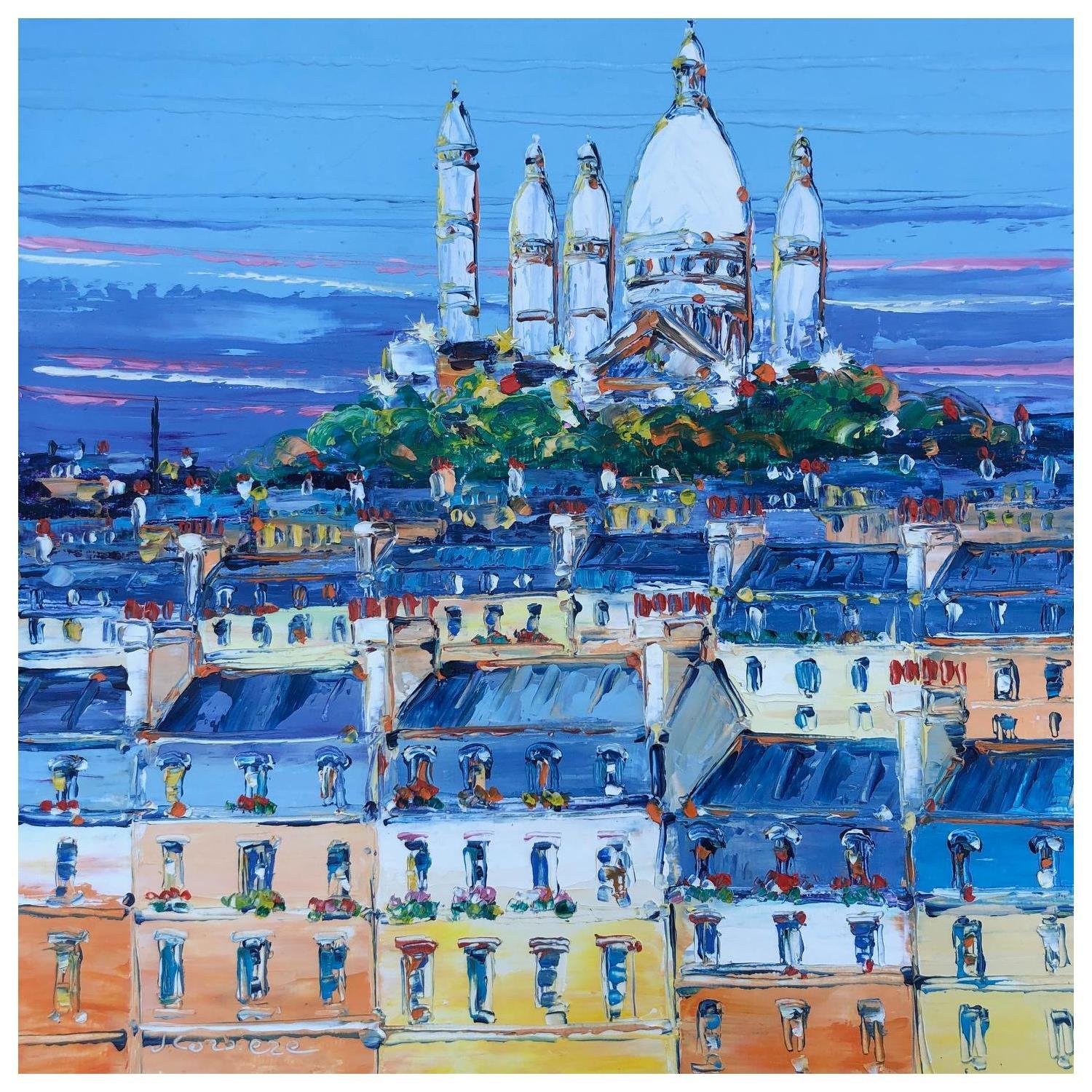 This unique and original contemporary artwork "Habits du soir sur Sacré-Coeur" on the subject of Landscapes has been created by the contemporary artist Corbière Liisa.