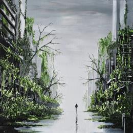 This unique and original contemporary artwork "in the shadow of the city" was created by contemporary artist Galloro Maurizio.