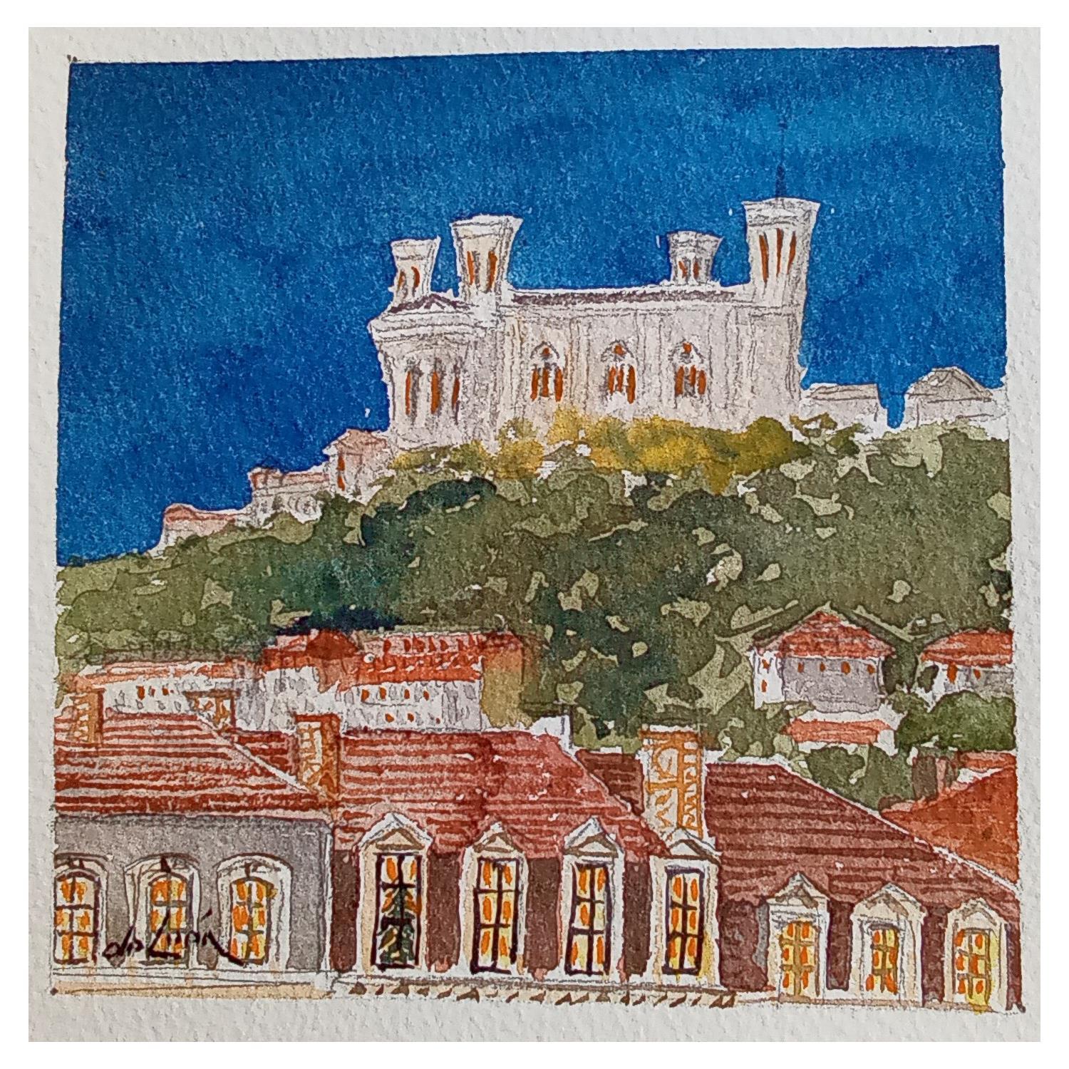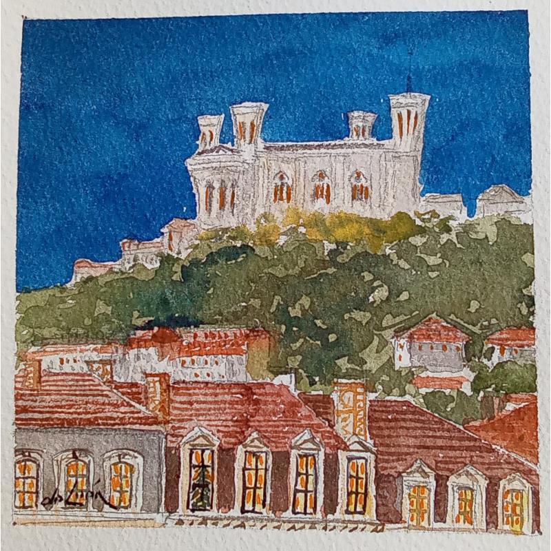 This unique and original contemporary artwork "Notre Dame de Fourviere à Noel" on the subject of Urban has been created by the contemporary artist De León Lévi Marcelo.