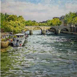 This unique and original contemporary artwork "Paris, Le pont Marie et l'Île Saint-Louis" on the subject of Urban has been created by the contemporary artist Decoudun Jean charles.