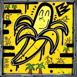 This unique and original contemporary artwork "Banana party" on the subject of Nature has been created by the contemporary artist Ralau.