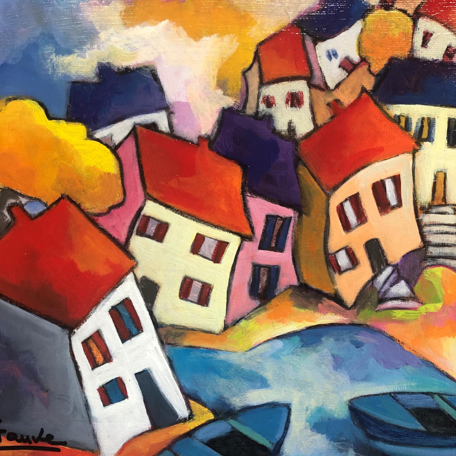 This unique and original contemporary artwork "Village provençal (2)" on the subject of Landscapes has been created by the contemporary artist Fauve.