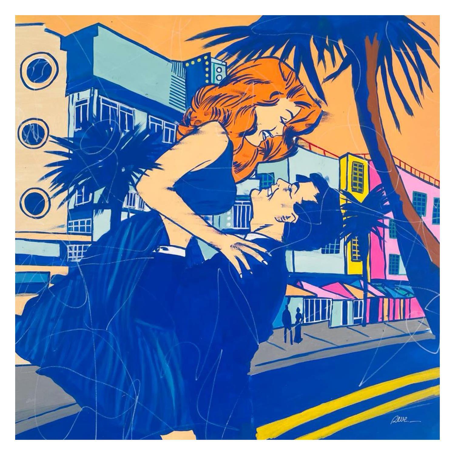 This unique and original contemporary artwork "Magie à Miami" on the subjects of Pop icons, Life style, Cinema has been created by the contemporary artist Revel.