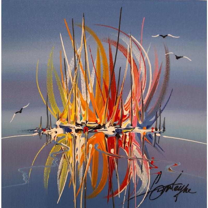 This unique and original contemporary artwork "Coup de cœur en bateau " on the subject of Marine has been created by the contemporary artist Fonteyne David.