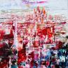 NYC" represents the megalopolis in a rather abstract way. She chooses an overhanging viewpoint to build perspective through a succession of volumes of decreasing size, thus simulating gigantism. The motif is painted in oil and palette knife, playing on oppositions between warm (shades of red) and cool (shades of blue) colors. The painting's proportions give pride of place to the city, and the horizon is set very high to accentuate perspective and the vanishing point...