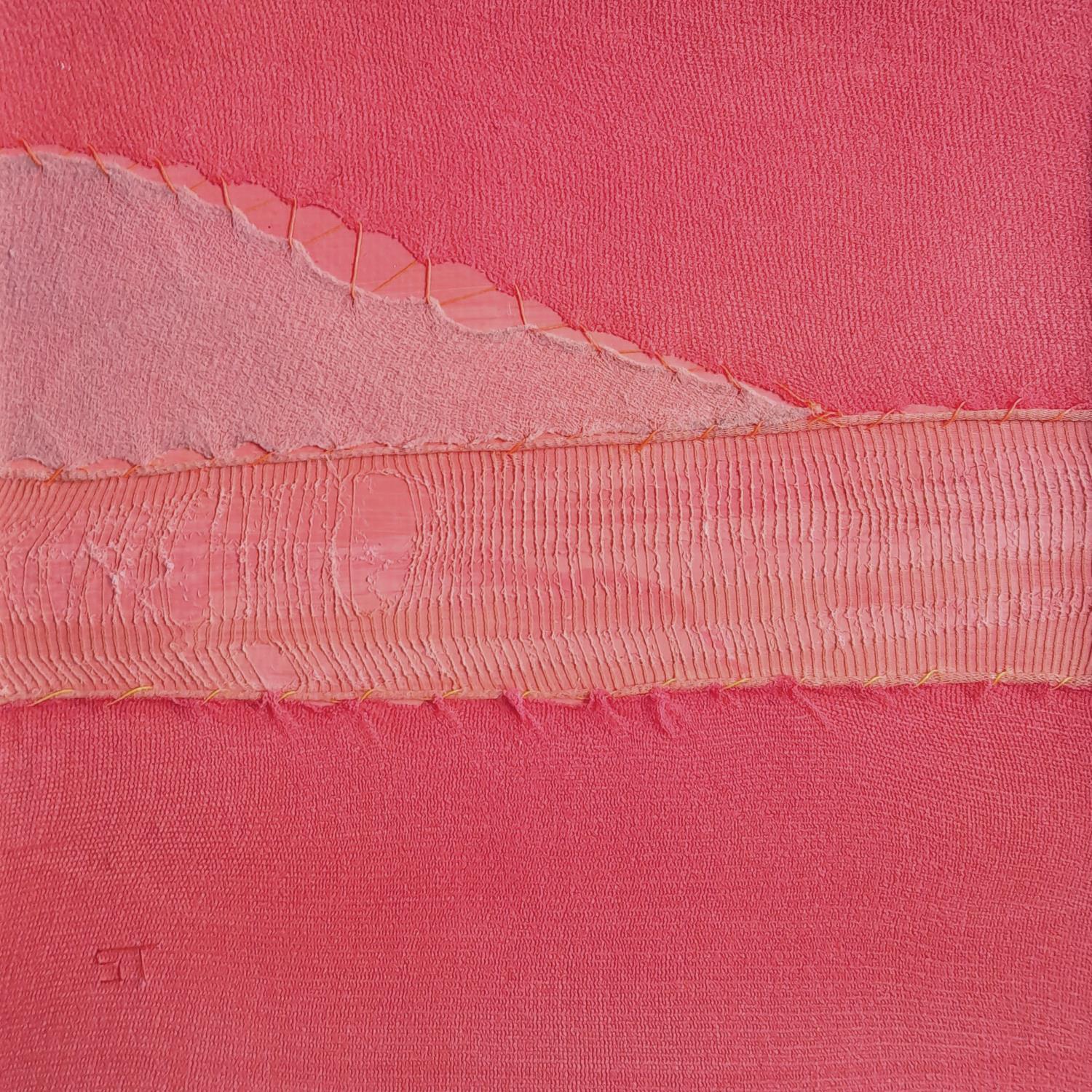 The artist used Textile, Acrylic media on Canvas to create this Abstract, Small size painting.