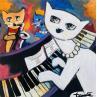 Perle au piano Pintura Perle au piano  por Fauve | Pintura Figurative Life style Animals Acrylic