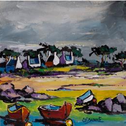 This unique and original contemporary figurative work of art was created by the painter Cèdanne. The artist used a variety of techniques to create this small-format painting on canvas, treating this stormy landscape in Brittany with his own distinctive style.