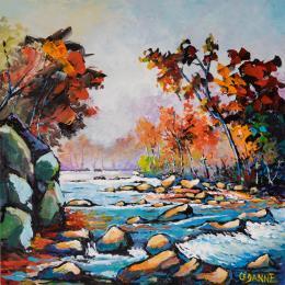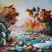 This unique and original contemporary figurative work of art was created by the painter Cèdanne. The artist used a variety of techniques to create this painting on canvas, depicting an early-morning autumn countryside landscape in his distinctive style.