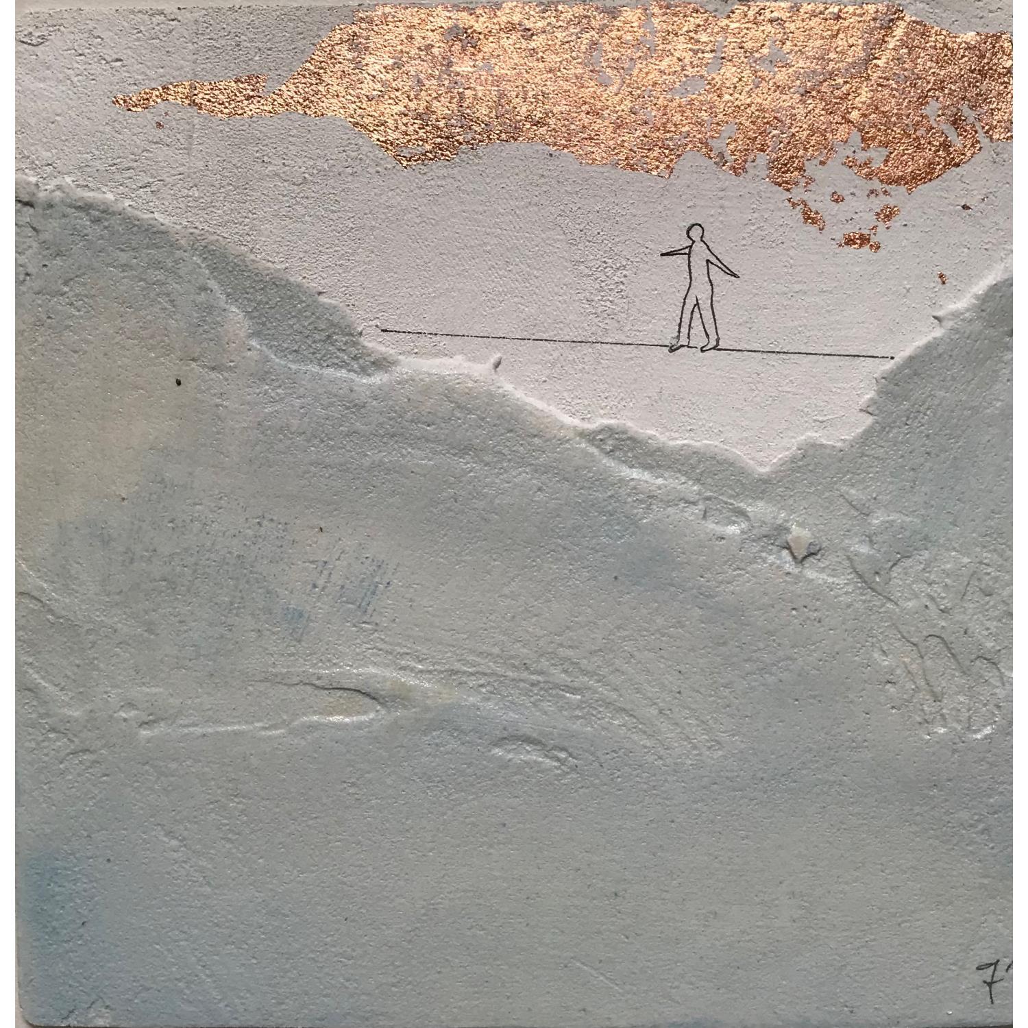 Abstract in appearance, Gaia’s creations plunge the viewer into the world of dreams, more specifically into that fragile, hazy borderland between sleeping and being awake, which might be called "a semi wakeful state”. The subjects that inhabit and haunt the compositions are mostly taken from commonly known myths and legends - or simply drawn from the collective imagination - so that they may resonate with the unconscious mind of every individual. Small sculpted figures, apparently suspended and emerging from the vastness of the background...