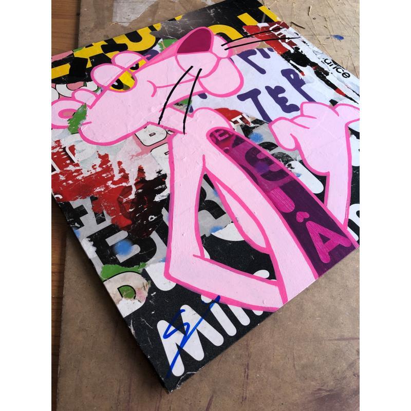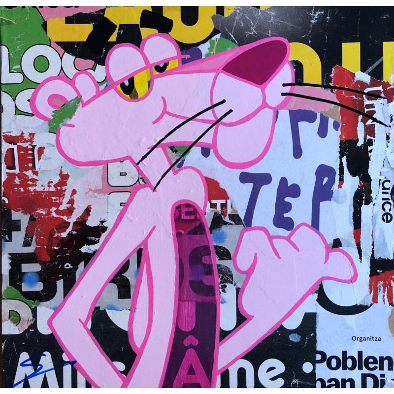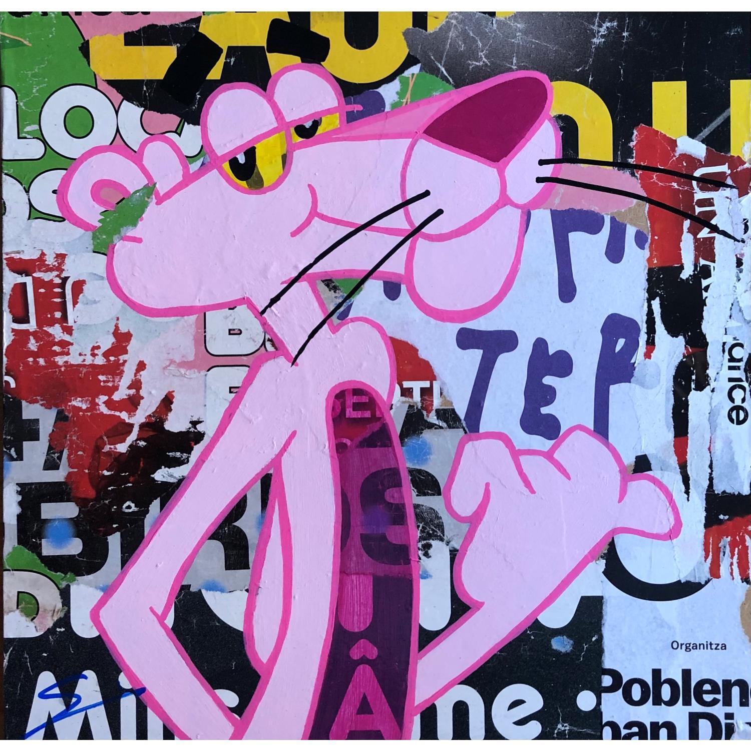 This unique and original contemporary artwork "PINK POSTER" on the subject of Pop icons has been created by the contemporary artist Mestres Sergi.