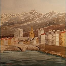 Montagnes gardant la Ville Pintura Montagnes gardant la Ville  por De León Lévi Marcelo | Pintura Figurative Urban Watercolor