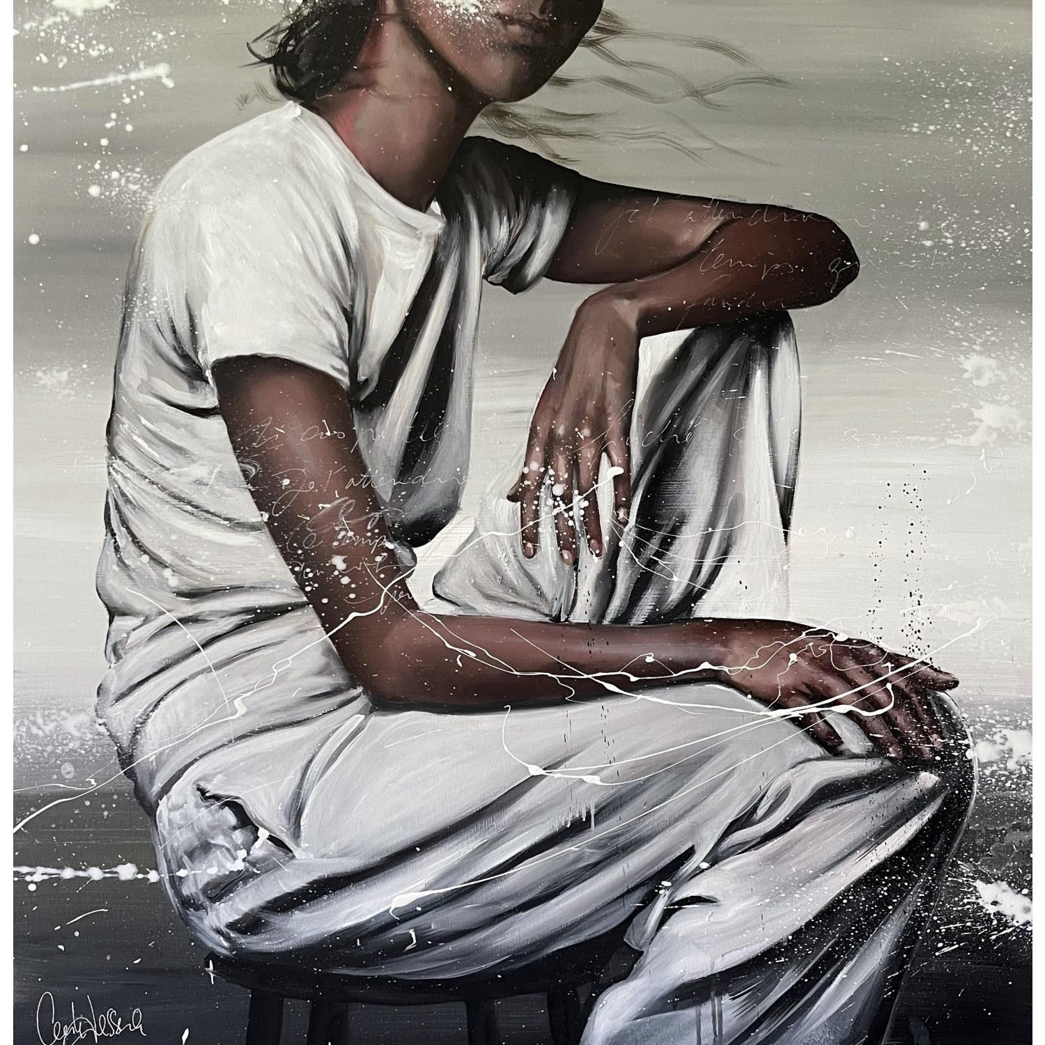 This unique and original contemporary artwork "Je t'attendrai" on the subject of Portrait has been created by the contemporary artist Desserle Cecile.