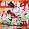 This unique and original contemporary artwork "Snoopy Snow board" on the subject of Pop icons has been created by the contemporary artist Kikayou.