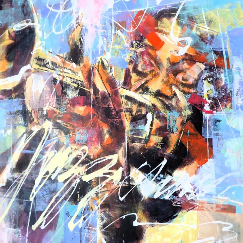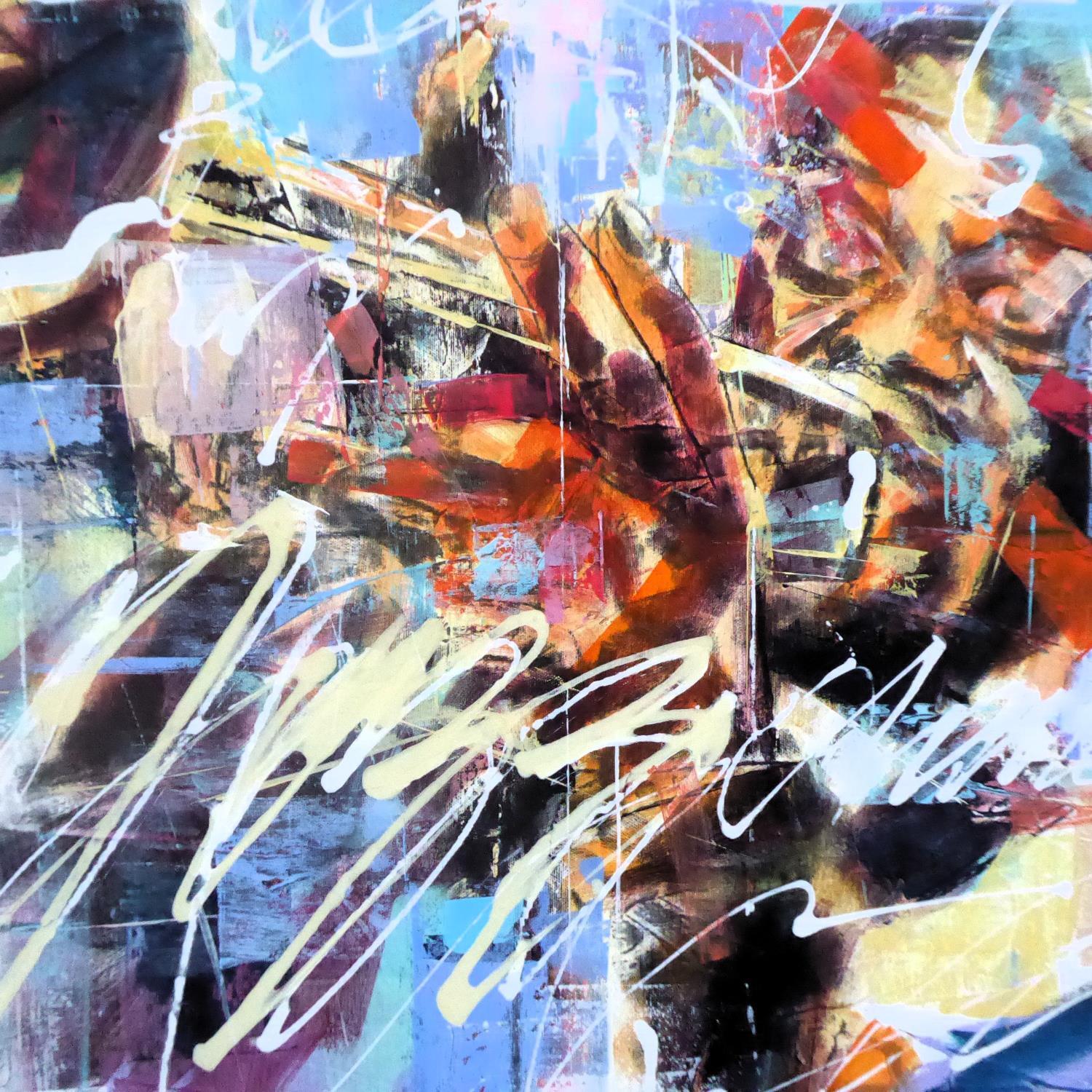 This unique and original contemporary artwork "Jazz Club" on the subject of Music has been created by the contemporary artist Silveira Saulo.