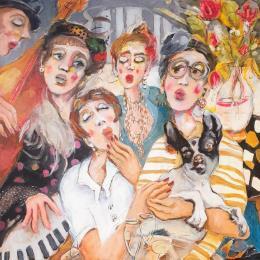 Fleurs, froufrous et mélodie pour élégantes Pintura Fleurs, froufrous et mélodie pour élégantes  por Garilli Nicole | Pintura Figurative Life style Acrylic Charcoal