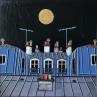 Pintura La ville dort por Lovisa | Pintura Figurative Urban Acrylic Gluing Posca Gold leaf Upcycling