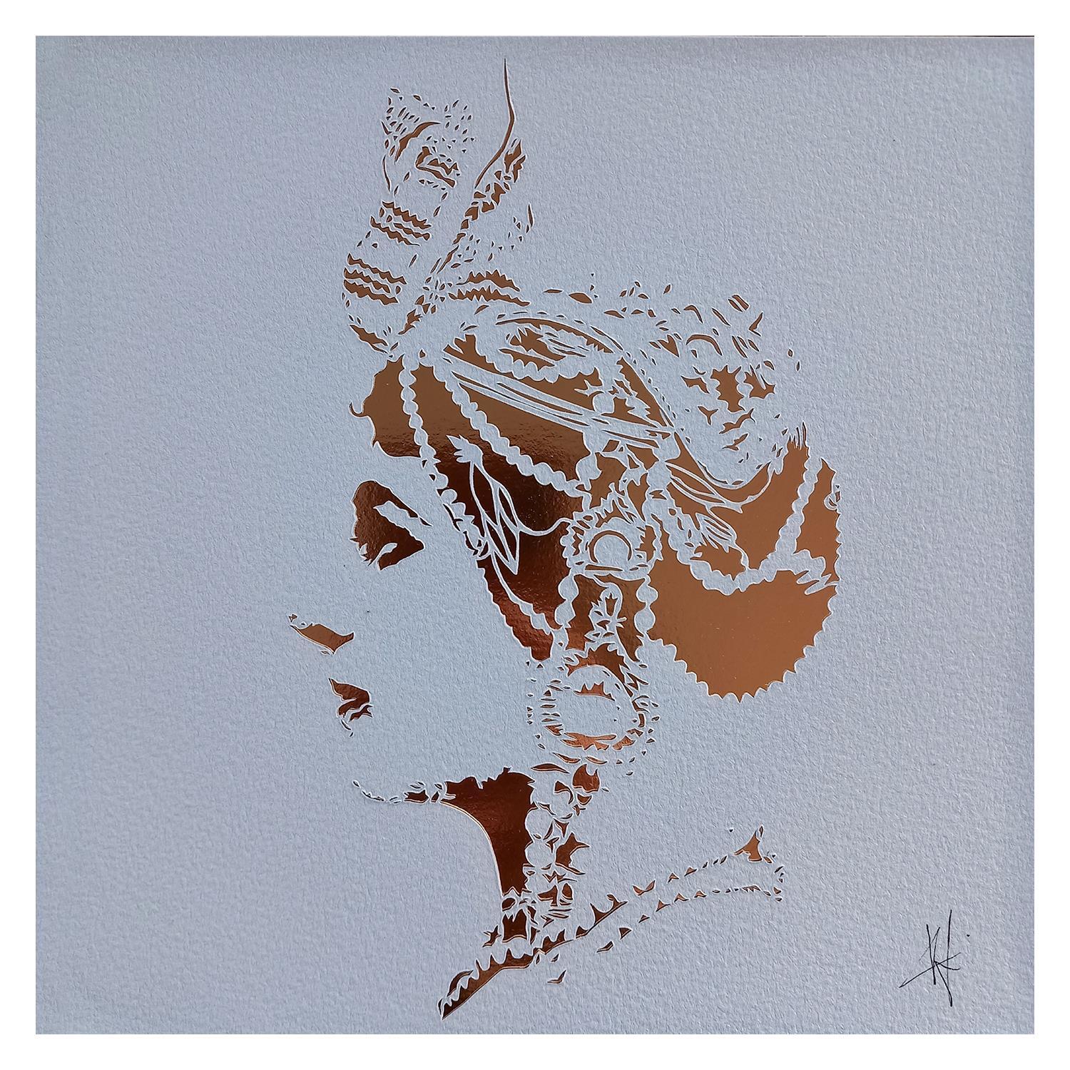 The artist used the cut-out paper technique to create this small-format work on Figurative Paper on the theme of Portraits.