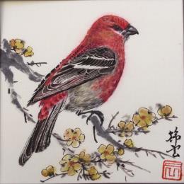 This unique and original contemporary artwork "Durbec des sapins mâle" on the subject of Animals has been created by the contemporary artist Tayun.
