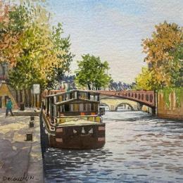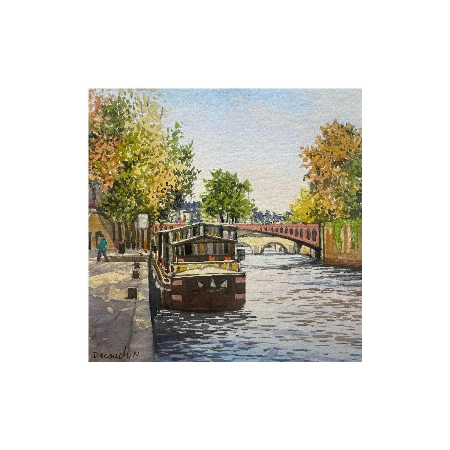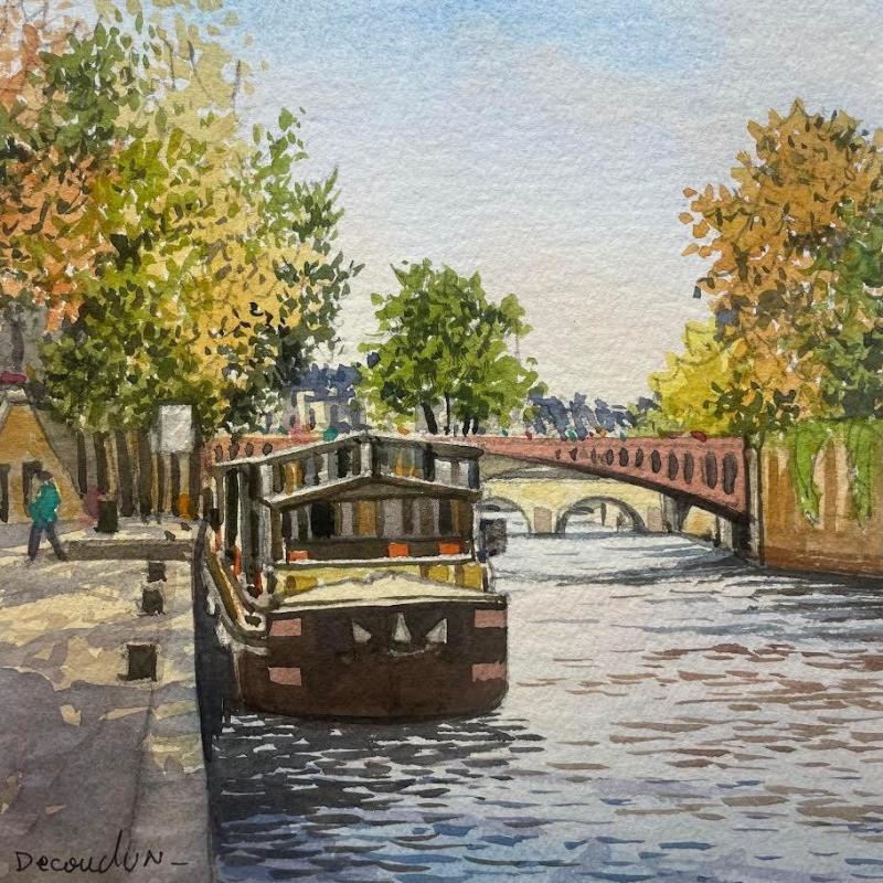 This unique and original contemporary artwork "Paris, les quais de la Seine" on the subject of Urban has been created by the contemporary artist Decoudun Jean charles.