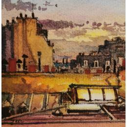La nuit, les toitsPintura La nuit, les toits por Decoudun Jean charles | Pintura Figurative Urban Watercolor