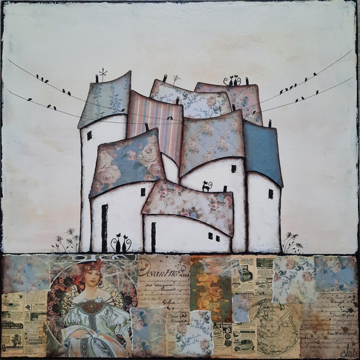 The artist used Acrylic, Gluing media on Canvas board to create this Figurative, Small size painting.