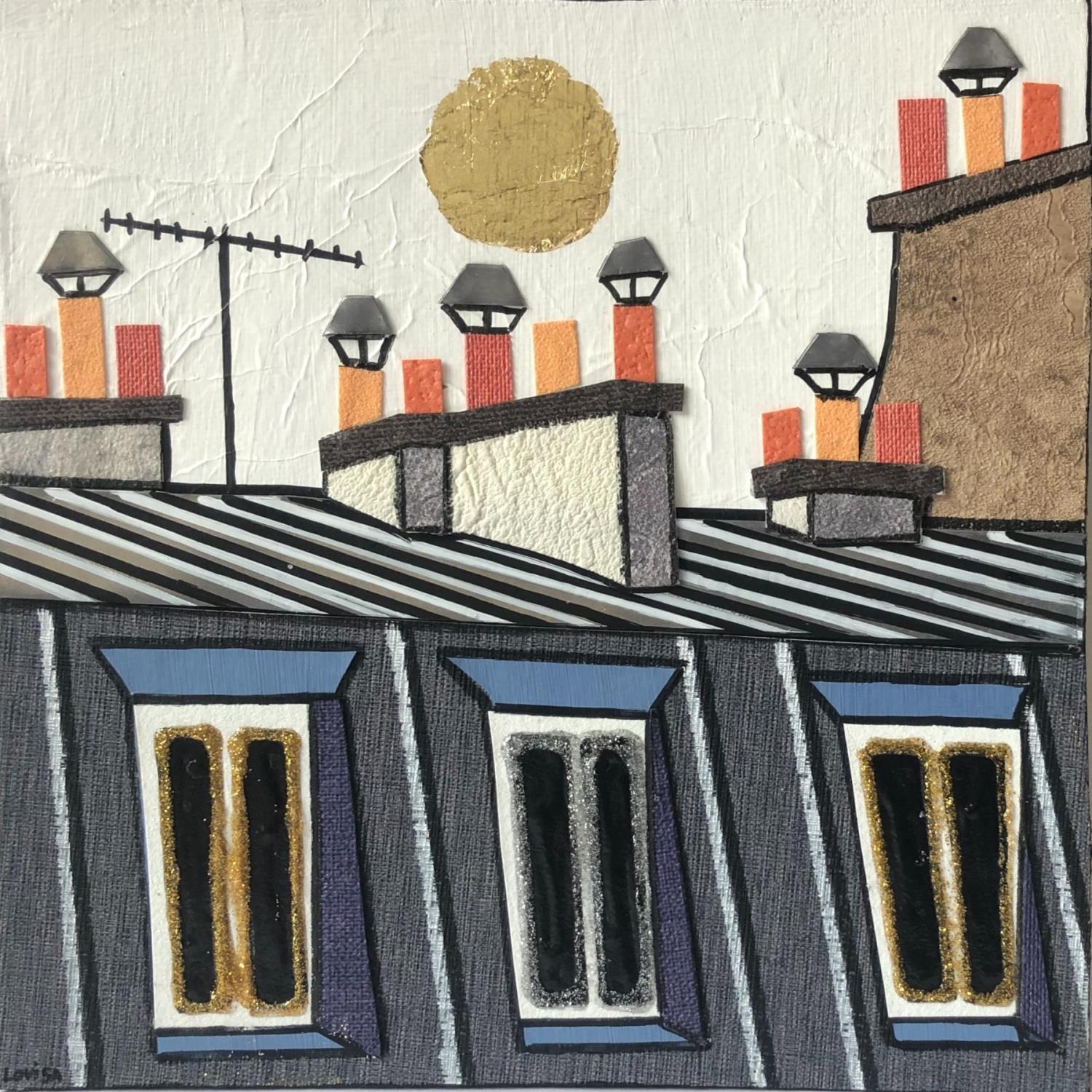 Pintura Au Petit Matin por Lovisa | Pintura Figurative Urban Acrylic Gluing Posca Gold leaf Upcycling