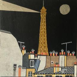 Pintura Une nuit à Paris por Lovisa | Pintura Figurative Urban Acrylic Gluing Posca Silver leaf Upcycling
