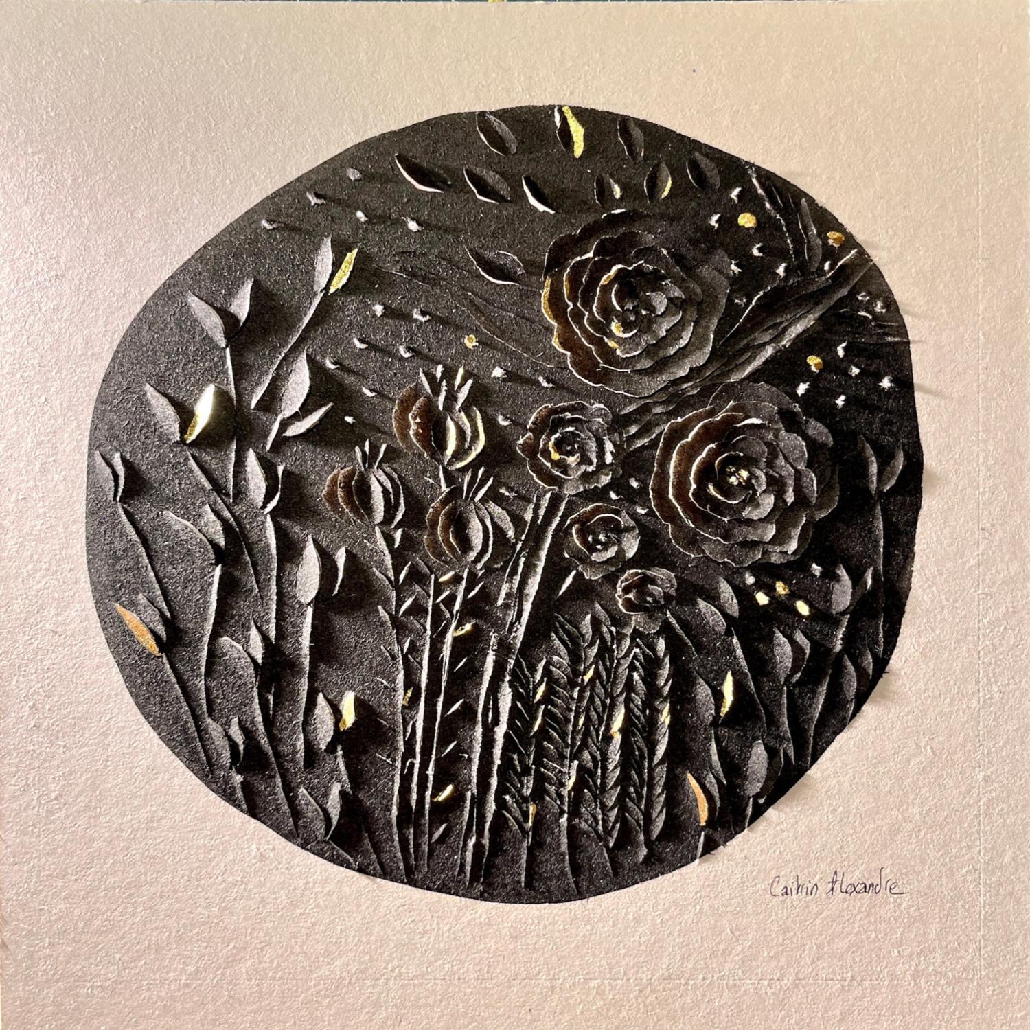 Caitrin Alexandre, heir to a family love of creation, immersed herself in the world of paper from childhood, influenced by her mother's profession. Her first creative steps, shaping and gluing paper, evolved over the years. In the 80s, she experimented with paper lampshades, playing with light and shadow. After a career in film and decoration, Caitrin returned to her first passion in 2016, devoting herself fully to paper sculpture, creating delicate, poetic bas-reliefs.