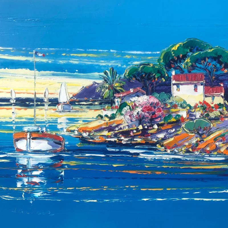 This unique and original contemporary artwork "Reflets des bateaux" on the subjects of Marine, Landscapes has been created by the contemporary artist Corbière Liisa.