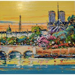 This unique and original contemporary artwork "Paris, croisière sur la Seine " on the subject of Landscapes has been created by the contemporary artist Corbière Liisa.
