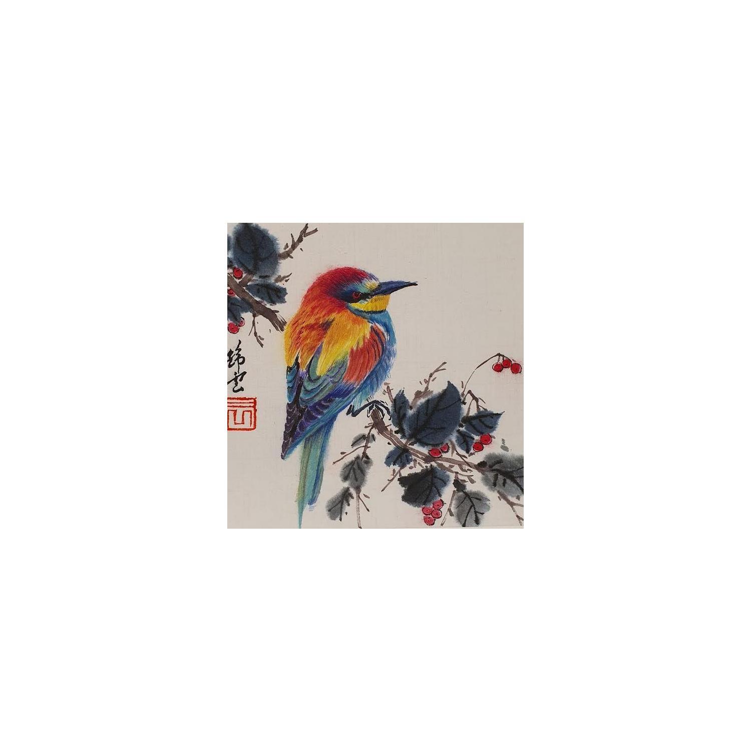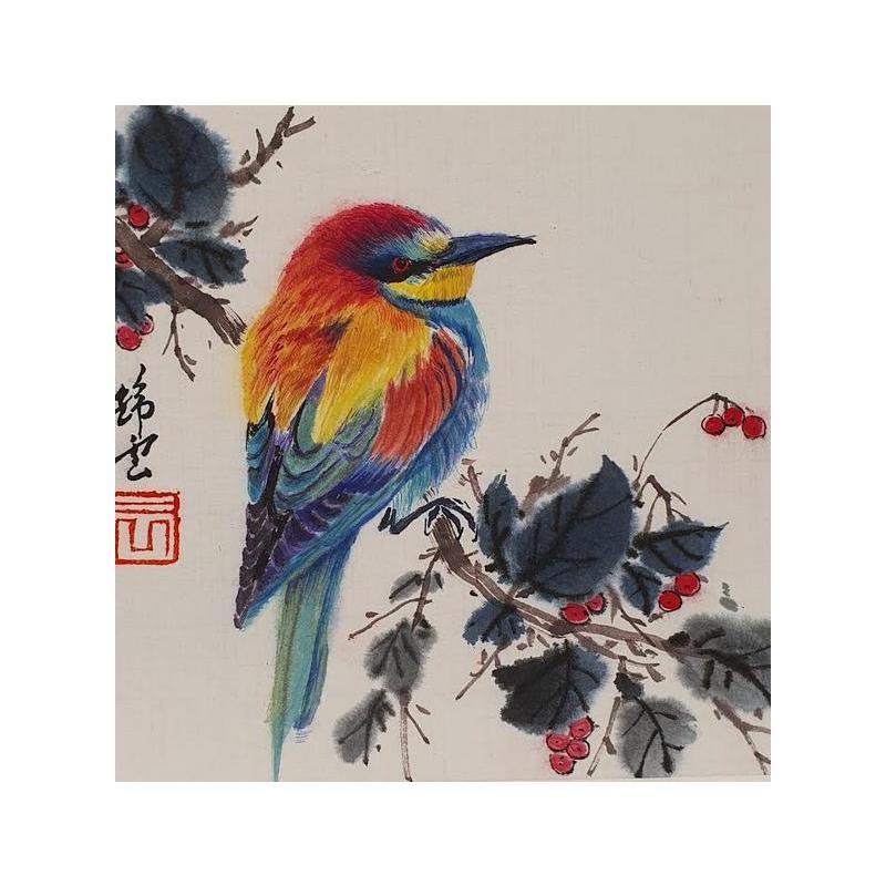This unique and original contemporary artwork "Guêpier d'Europe" on the subject of Animals has been created by the contemporary artist Tayun.