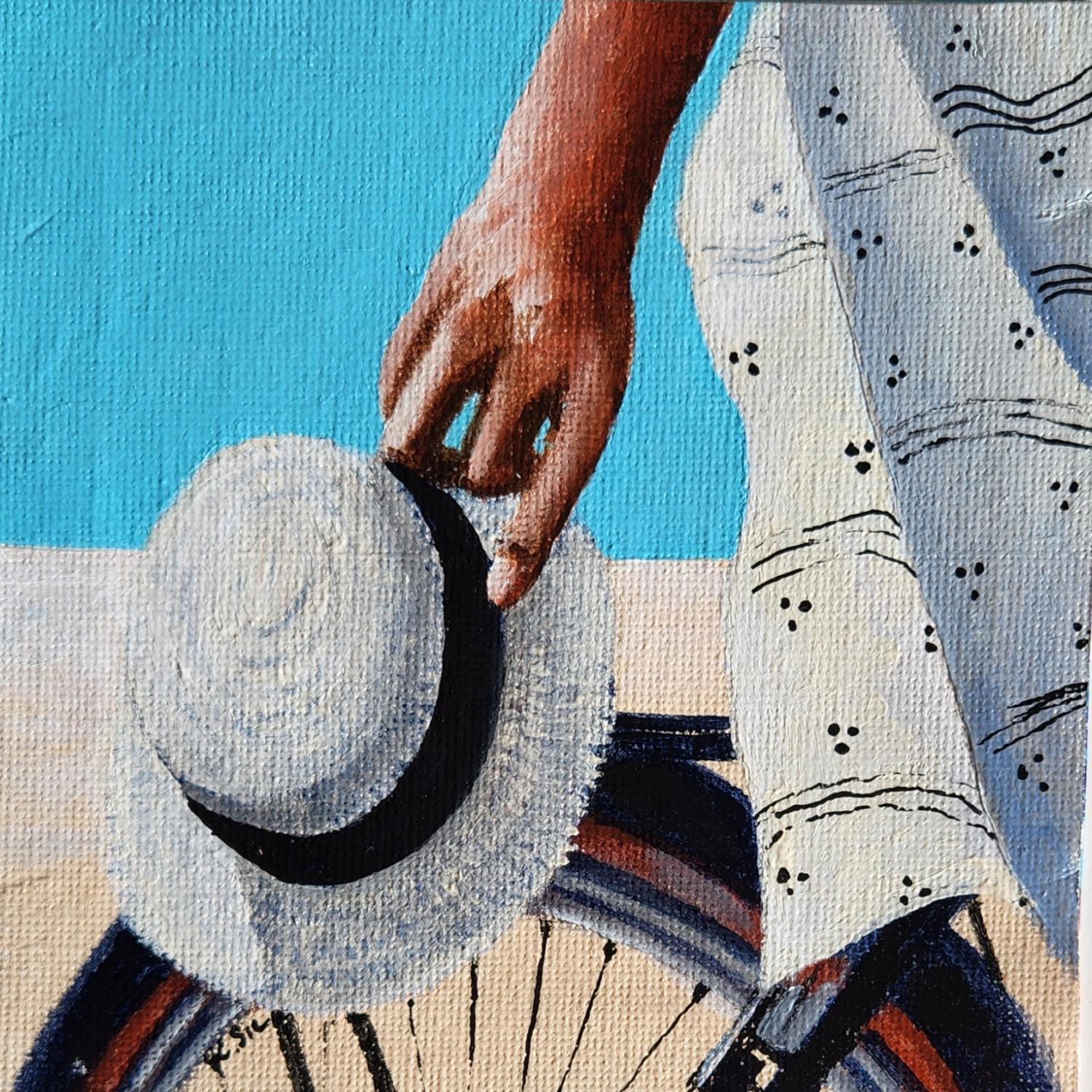 The artist used the Acrylic technique to create this small-format figurative painting.