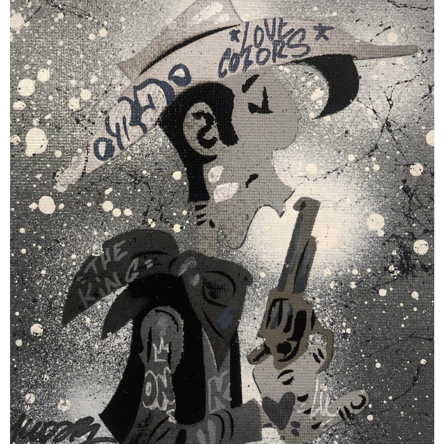 This unique and original contemporary artwork "Lucky Luke gris" on the subject of Pop icons has been created by the contemporary artist Kedarone.