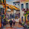 This unique and original contemporary artwork "Village fleuri animé" on the subjects of Landscapes, Urban, Life style has been created by the contemporary artist Cédanne.