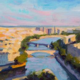 This unique and original contemporary artwork "Vue de la Seine " on the subject of Landscapes has been created by the contemporary artist Eugène Romain.