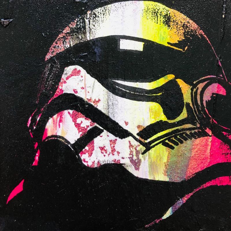 This unique and original contemporary artwork "Stormtrooper" on the subjects of Cinema, Pop icons has been created by the contemporary artist Mestres Sergi.