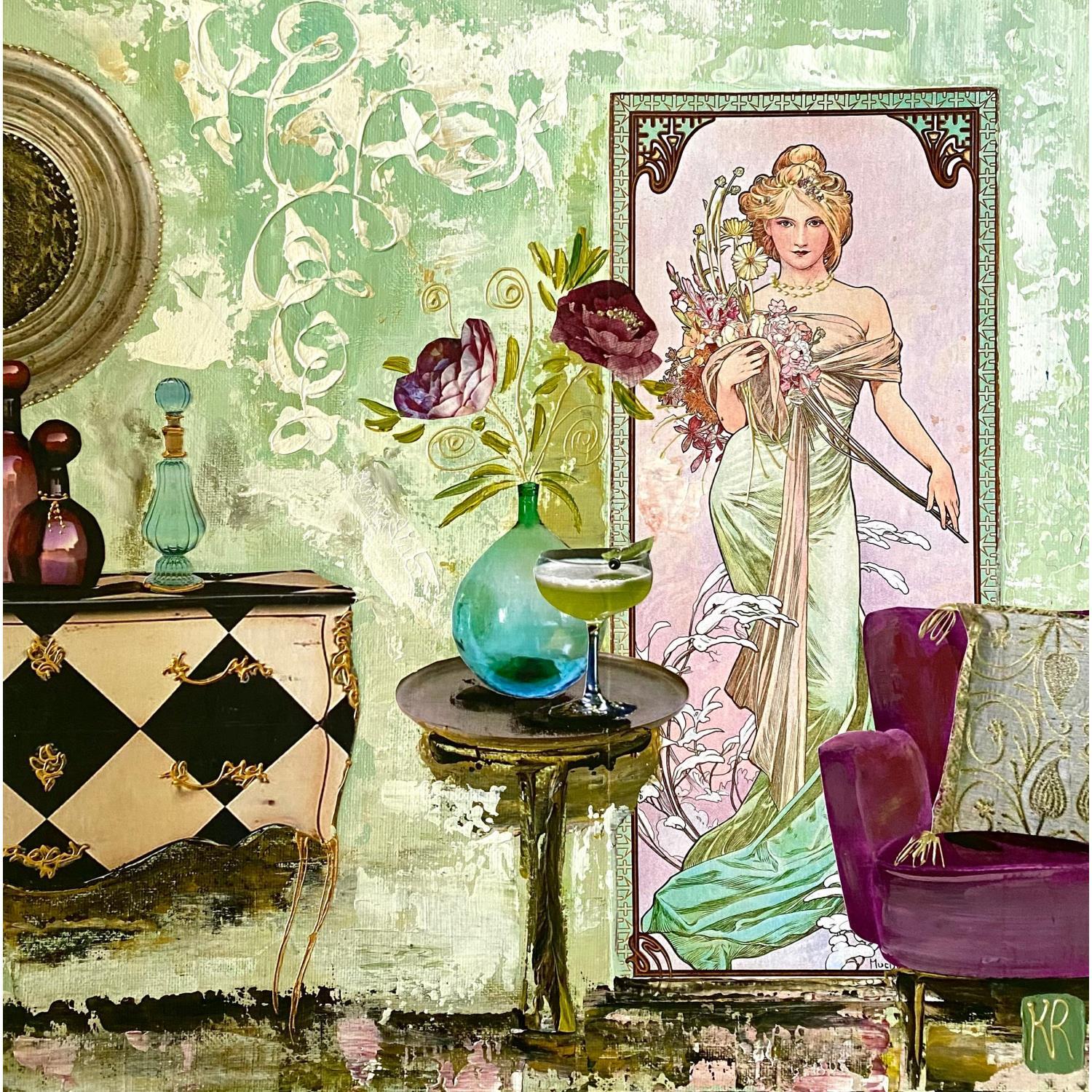 Karine Romanelli's work is located at the crossroads of two worlds. Merging the photographic image with the painted image, the artist evokes the real in many of its possible forms of representation and interpretation. In this way, her collages superimpose frames, creating a spatial distortion, which brings her compositions closer to a kind of abstraction. The frames also bring together spaces, connecting urban landscapes, familiar indoor settings and everyday objects in a kind of cross section of reality that reveals, in a single frame, both the interior and exterior of a given scene. This kind of freedom of composition, which comes from the ability to move away from classical painting and the search for perspective securely sets Karine Romanelli's work in an approach that is that of the Avant-Gardes and the artists of Modernity.
