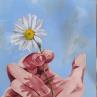 The artist used the oil technique to create this small-format painting on wood in the figurative style.
